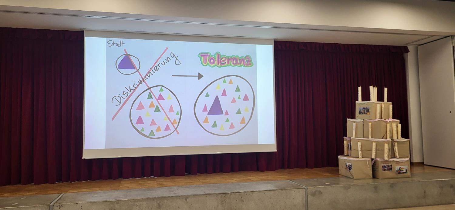 Zwischen den Pausen machte die Vielfalts-AG mit einer Präsentation auf ausgewählte Menschenrechte aufmerksam. Diese wurden kreativ und anschaulich in Bildern dargestellt, unter anderem das Recht auf Bildung und das Recht auf Toleranz. So wurde der Tag nicht nur unterhaltsam, sondern auch informativ und zum Nachdenken anregend gestaltet.